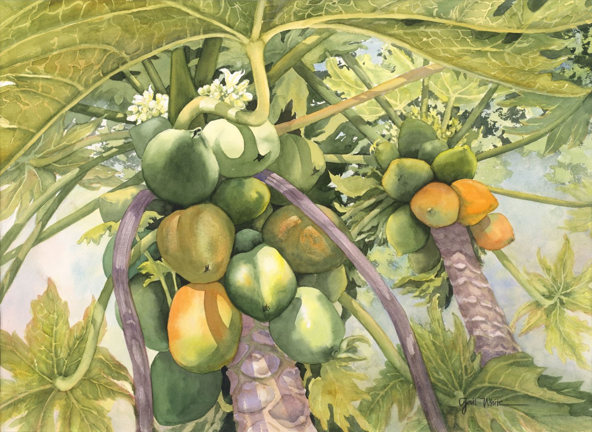 This tansparent watercolor was inspired by the papayas at Selby Gardens. This piece measures 30" X 22"